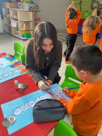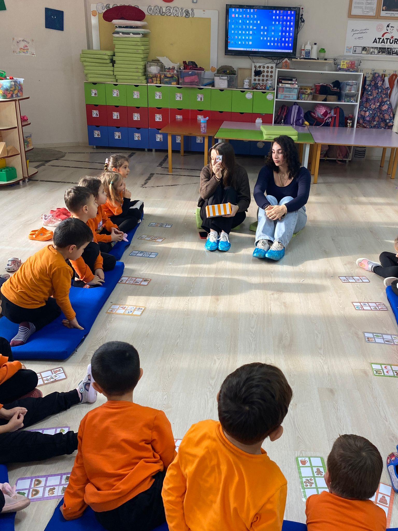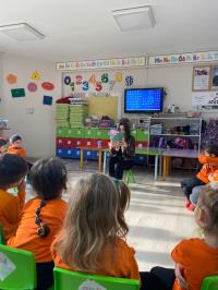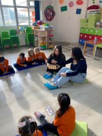 Dersin konusu kış mevsimiydi. Etkinlik, kış mevsimini anlatan şarkıların dinlenmesi ve çocuklarla yapılan sohbetlerle başladı. Konunun pekiştirilmesi amacıyla kış temalı kardan adam etkinliği yapıldı. Şarkılar eşliğinde dans edilip oyunlar oynandı. Ardından gönüllü öğrenciler, yine kış mevsimiyle ilgili bir kitap okudu.