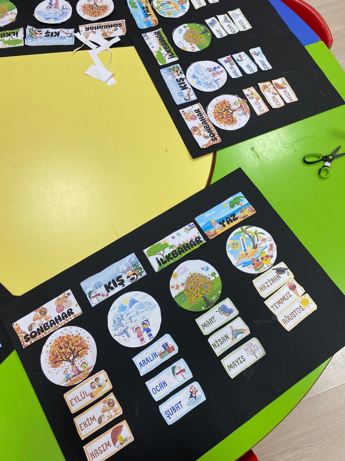 Diğer sınıfta ise obje boyama etkinliğinden farklı olarak mevsimler ve aylar konusuna odaklanıldı. Konunun pekiştirilmesi amacıyla eğitici videolar izlendi, şarkılar dinlendi ve oyunlar oynandı. Etkinlikler, çocukların aktif katılım sağladığı eğlenceli bir programla tamamlandı.