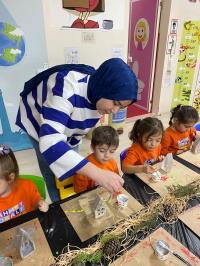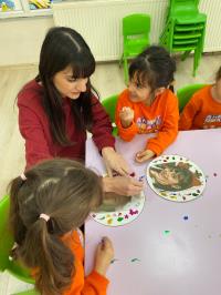 Devamında çocukların kendi fotoğraflarını kullanarak kapı asma süsü hazırlamaları sağlandı. Bu etkinlikle hem yaratıcılıkları desteklendi hem de aidiyet duygularının güçlendirilmesi amaçlandı.